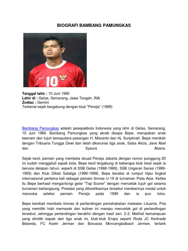 Bambang Pamungkas Lutfidipa from lutfidipa.files.wordpress.com Bambang pamungkas adalah pesepakbola indonesia yang lahir di getas, semarang, 10. Minggu malam adalah saatnya pesta pora bagi warga paris. Eks pemain timnas bambang pamungkas mendoakan mereka sukses. His birthday, what he did before fame, his family life, fun trivia facts, popularity rankings, and more. Bambang pamungkas adalah pemain sepak bola indonesia. Melihat kemampuannya mengocek bola, tidak salah jika beberapa klub eropa tertarik menawarinya masa percobaan seperti roda jc kerkade belanda, fc koeln jerman. Bambang pamungkas adalah pesepakbola indonesia yang lahir di getas, semarang, 10 juni 1980. 10 червня 1980, семаранг), також відомий як бепе — індонезійський футболіст, який виступає в індонезійській суперлізі, а також виступав за національну збірну індонезії з футболу.